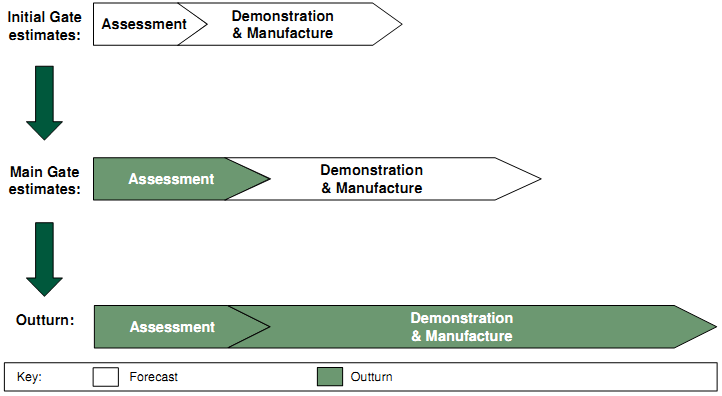 • 1 - Assessment phase, taken here as the period between Initial Gate and Main Gate approvals