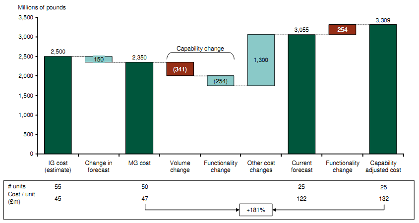 This highlights further loss in capability that has occurred since Main Gate that should be adjusted for such that a true comparison of cost growth versus the original capability at Main Gate can be made. This is an adjustment that has not been considered in this review.