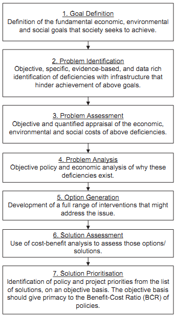 • an understanding of the economic and financial appraisal methods used to prioritise particular infrastructure projects, and in particular a copy of any cost‐benefit analyses that had been made of those projects and on any other proposed regulatory reform options (the 'solution assessment').