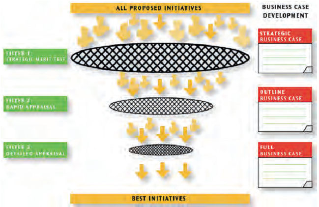 • selection, in which the outputs of the preceding profiling and appraisal phases were to be used to create a priority list of initiatives to enable informed decision‐making for the allocation of funding.