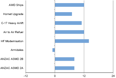 • ANZAC ASMD 2B, and ANZAC ASMD 2A (delays linked to the change in the projects' acquisition strategy).