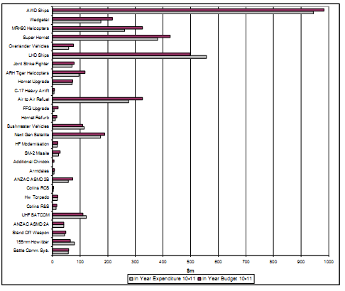 2.17 Another key factor is the evolution of the project and its performance to date. Some projects may, for example, be well advanced but show a low level of expenditure against their total budget. This may result from poor contractual performance culminating in withholding of payments against specific milestones. This is, in effect, a deferral of payments that will be re- instated upon contractor achievement of milestones. Alternatively, unanticipated changes in project circumstances may also affect the level of project expenditure (e.g. Hornet Refurbishment had originally planned to replace 49 centre barrels but subsequent engineering and scientific work analysing airframe fatigue found that only 10 centre barrels required replacement. This will realise a significant reduction in expenditure against the project's approved budget).