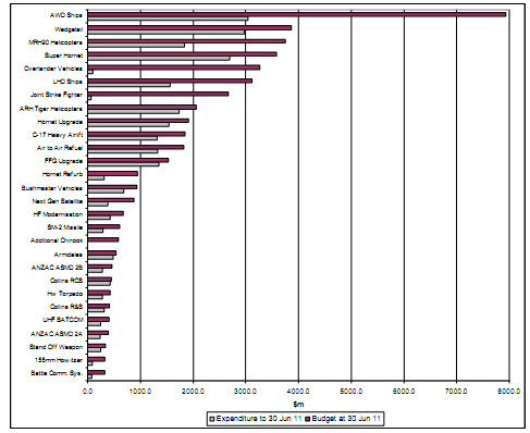 2.14 Figure 2.2 provides a comparison of expenditure as at 30 June 2011 compared to the total approved budget at that date. No project has exceeded its total approved budget. While this provides an indicator of project progress, the percentage of budget spent is dependent on the nature of the project and the level of early investment that may be required for project start-up and non- recurring engineering effort.