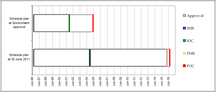May 05 | Jul 16 | 134 | Delays in IOC lead to consequent delays in FOC. FOC date now allows for completion of activities required post FMR (now that FMR date has been identified). Delays in gaining scope change approval and availability of skilled project office personnel may impact FOC schedule. This date is based upon the last of the 79 Mobiles upgrades obtaining FOC. Deferral of operational capability. |