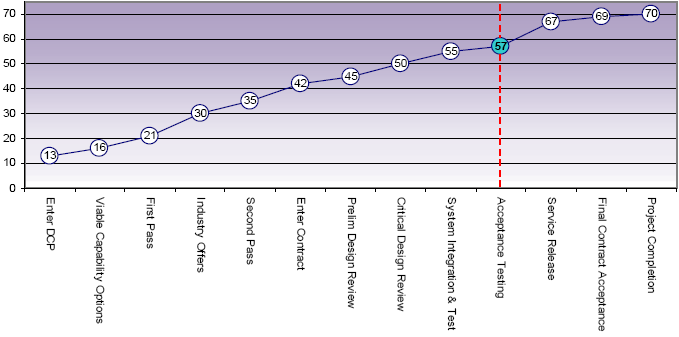 Explanation | • Cost: Contingency (97% of the total provision available to the project) remains. A Real Cost Decrease via the Approved Major Capital Investment Program 2011-12 Portfolio Budget Statements has been proposed. • Requirement: HMAS Sydney has successfully completed the Stage 2 Mid-Course Guidance lead-ship Acceptance Test live fire events (June 2011). • Technical Understanding: Knowledge needs to operate and support the solution understood. No major impediments to acquiring and transferring this knowledge to the RAN. • Operations and Support: The support systems have been defined and procurement of long-lead support elements progressed. | ||||||||