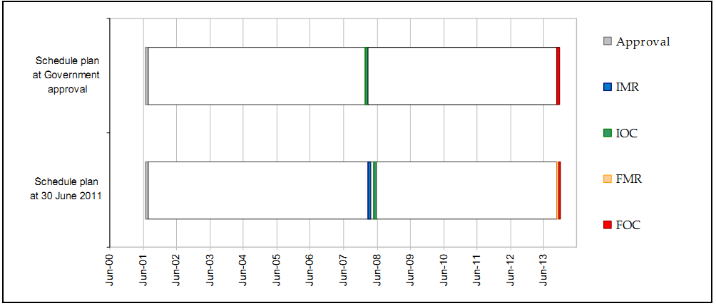 | APB 4 | Nov 13 | Nov 13 | 0 | Achievement of FOC is dependent on Navy. The capability delivered by the project is consistent with the MAA and FOC will be achieved when the Capability Manager confirms all other Fundamental Inputs to Capability (FIC) are complete. | ||