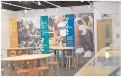 What is it? • Innovative education centre within working waste management facility; Hornsey Street Waste, Re-use and Recycling Facility Design Features • Elements within the centre are made entirely of recycled or sustainable material. • Resource for Islington schools and community groups. • Developed in collaboration with experts from the National Science Museum. • Features touch-screen displays, games and videos as teaching aids to inform children and adults about recycling and waste issues