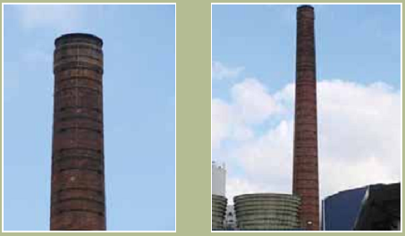 ■ Bolton, EfW - a traditional cotton town, a relatively old incinerator (1970 refurbished 1990's), a traditional brick stack has been used to reflect the historical industrial heritage of the area.
