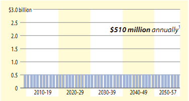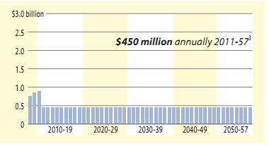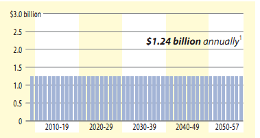 2. The Act 44 payment schedule included payments of $750 million, $850 million and $900 million in 2008, 2009 and 2010, respectively, which would be generated through increased Pennsylvania Turnpike toll revenue and debt. Payment schedule assumes a 2.5 percent increase each year after 2010, financed in part through newtolls on I-80. | 3. The Act 44 payment schedule included payments of $750 million, $850 million and $900 million in 2008, 2009 and 2010, respectively, which would be generated through increased Pennsylvania Turnpike toll revenue and debt. If I-80 tolls are not in place in 2011, the annual Act 44 payments will drop to $450 million each year. |