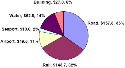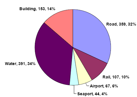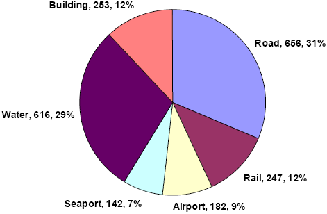 As shown in Exhibits 2 and 3 on the next two pages, about a third of the public-use infrastructure planned since 1985 or completed by October 2004 have been for road projects, including highways, bridges, and tunnels. On a worldwide basis, road has been the largest category of infrastructure using private financing through a public-private partnership arrangement.