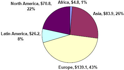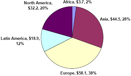 | Asia | 137 | 21% | $83.9 | 26% | 72 | 20% | $44.5 | 28% | 53% | 53% |