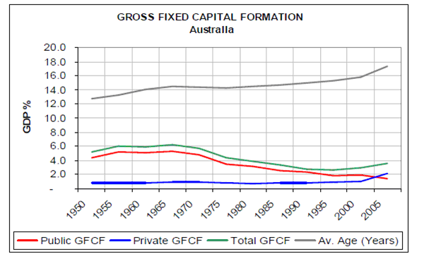 Diagram 1 Infrastructure Spending GDP % Australia 1950-2007