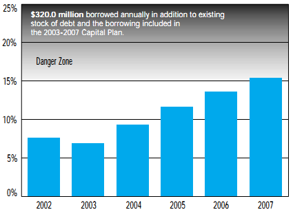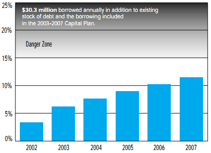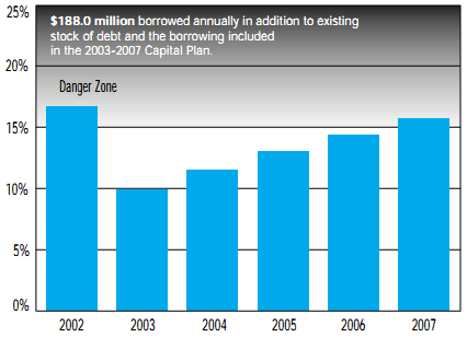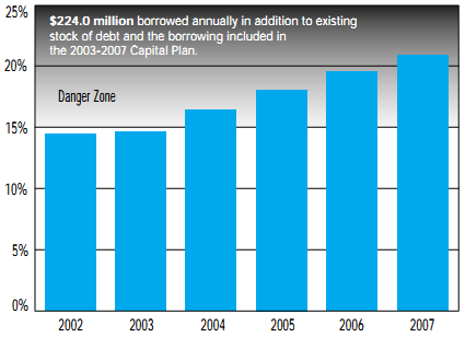 FIGURE 14: Debt Service Charges as a % of Operating Revenues if Infrastructure Deficits were Eliminated by Borrowing
