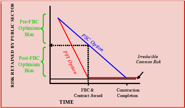 1.63 The Post-FBC Optimism Bias Factor represents the increase in the estimated costs or the shortfall in the income or benefits between the completion of detailed costs and benefits estimates (as they appear in the FBC) and the completion of the associated asset. A view of the level of the Post-FBC Optimism Bias Factor can be obtained by a Procuring Authority studying the amount that the actual costs incurred once the asset is complete exceed the costs, as set out in the FBC8.