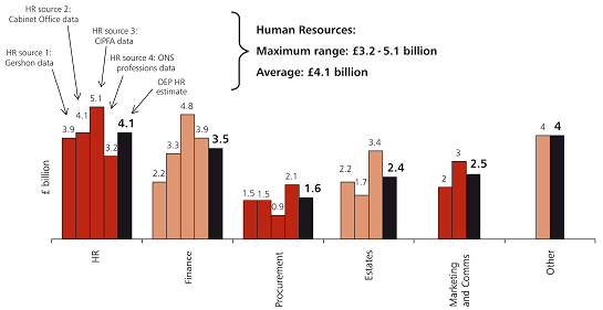 Chart 1.A: Summary of estimates for the cost of back office operations across the public sector