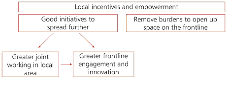 5.6 The local incentives and empowerment workstrand seeks to create the environment where collaboration and innovation on the frontline can flourish. The work has therefore adhered to two key principles to guide its analysis and recommendations: