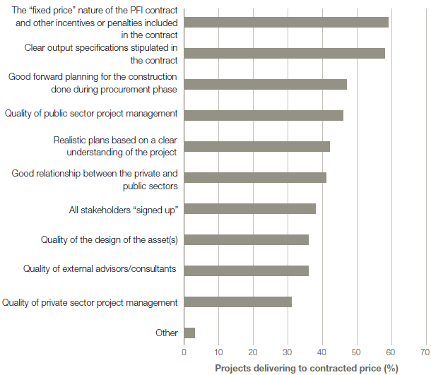 51 One project manager commented: "So PFI, from a purely financial point of view, worked very well delivering the assets because the risks on all these projects lies with the private sector, or in terms of it being managed better, that was the private sector's risk again… we got the facilities we wanted for the money quoted ultimately".