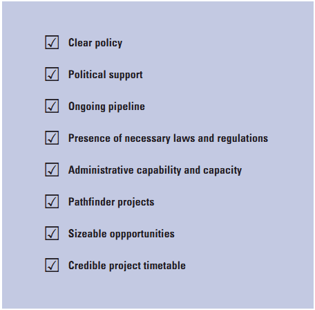Developing a procurement process that does not fit with the existing relevant laws and regulations is highly costly and time-consuming. This is also one of the areas that will be a main deterrent for private investors. Sometimes the insufficiency of the existing laws is not known or understood until the parties are in the heat of a transaction. To mitigate this risk, selecting a small number of pathfinder projects that can be used to test the approach planned for the main program can provide substantial benefits, as it will bring to the fore circumstances where the existing laws and regulations are inadequate.