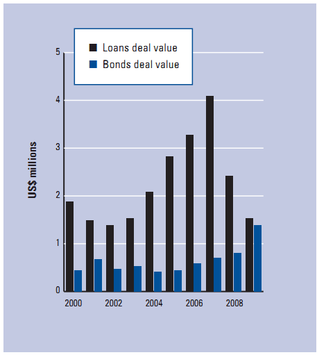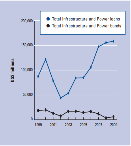 Figure 1: Infrastructure and Power: Global loans and bonds, 1999-2009