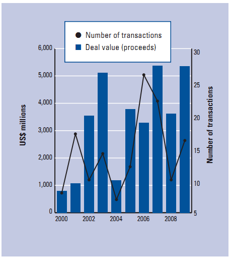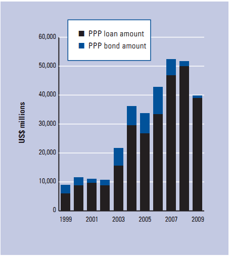 Figure 2: Total global infrastructure: PPP loans and bonds, 1999-2009