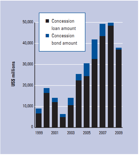 Figure 3: Total global infrastructure: Concession loans and bonds, 1999-2009