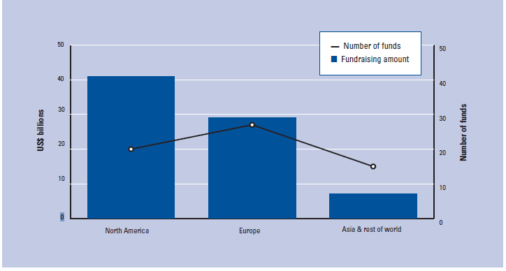 Figure 4: Infrastructure fundraising by primary geographic focus, 2007 to mid 2009
