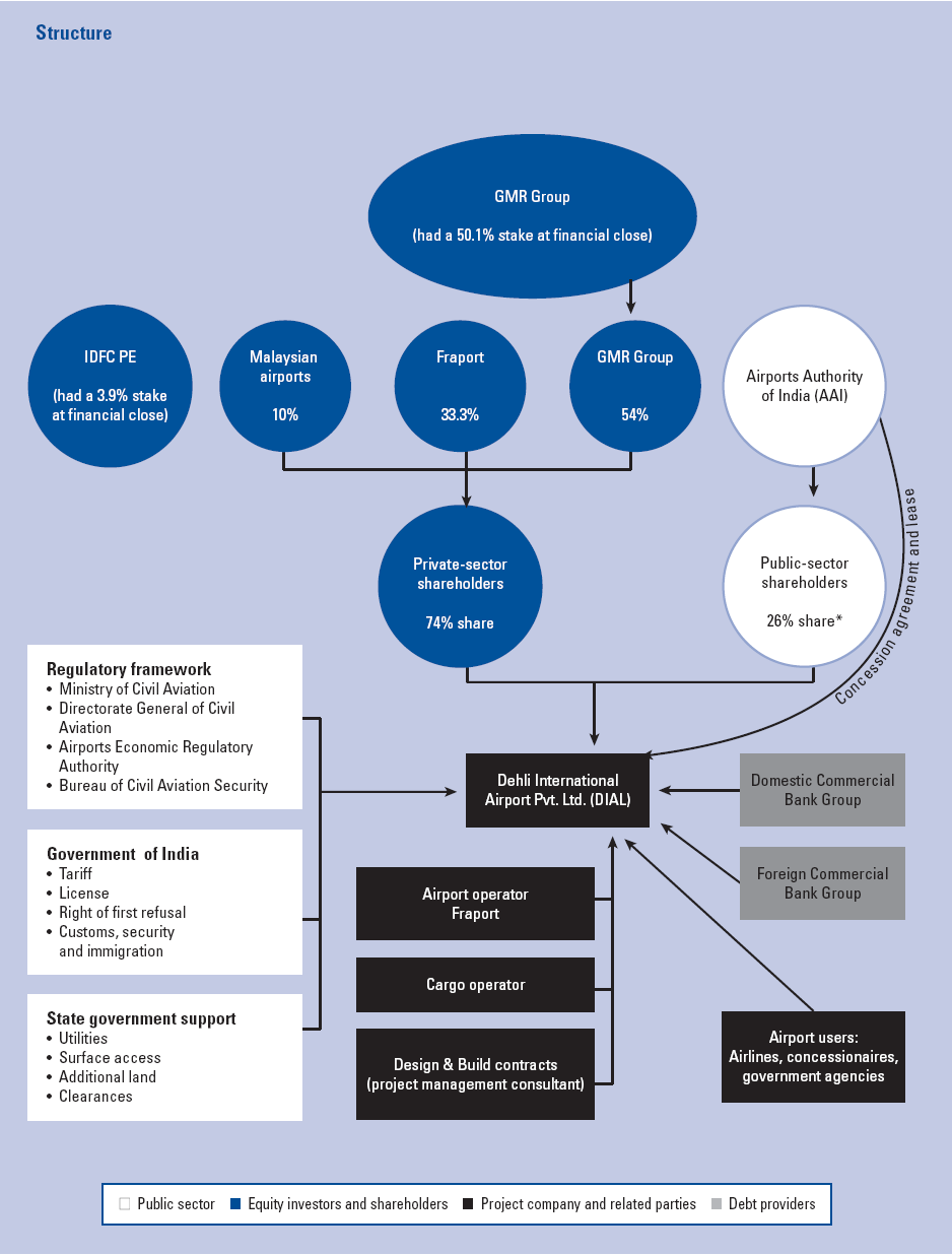 Private-sector shareholders have a 74 percent stake in DIAL. The original constituents were: