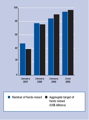 Figure 8: Growth of infrastructure funds launched from January 2007 to June 2009