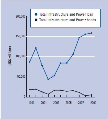Figure 2: Infrastructure and Power global loans and bonds, 1999-2009