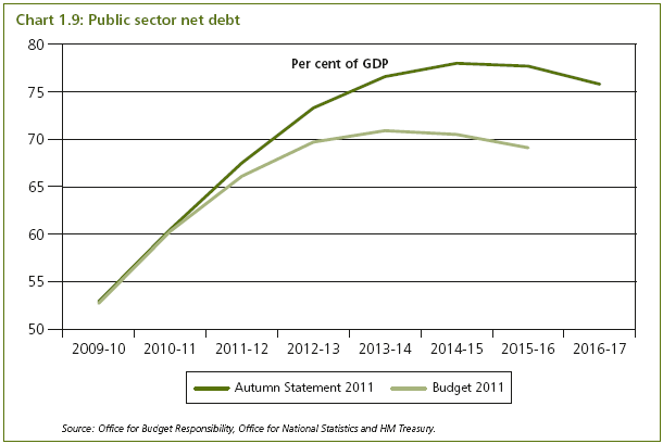 1.60 Including all measures set out in the Autumn Statement, the OBR's November 2011 Economic and fiscal outlook concludes that the Government remains on course to meet the fiscal mandate and the supplementary debt target. The OBR's judgement is that the Government's policies are consistent with: