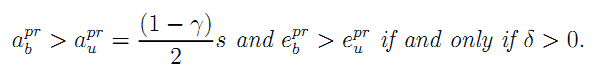 where s is large enough to insure a positive quality-enhancing effort even with a negative externality.