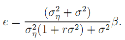 Notice that this effort level converges towards β when σ2η converges towards zero. When the financiers have a very informative signal on the firm's effort, there is no further dilution of incentives within their coalitional agreement: Effort is efficiently set within the firm/financiers coalition. Instead, when σ2η converges towards infinity, the effort level converges towards