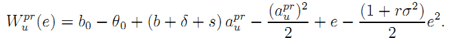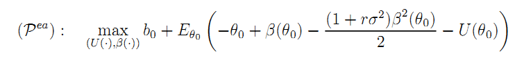 Observing that both (26) and (A.13) are binding yields the following expressions of the certainty equivalent for the firm's payoff for each realization of θ0 as: