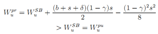 • Proof of Results 5 and 6: Under private ownership and unbundling, G can extract all the owner's surplus through an ex ante fee because he has all bargaining power exante. Given the effort levels defined in (10) and (11), we get the following expression of social welfare: