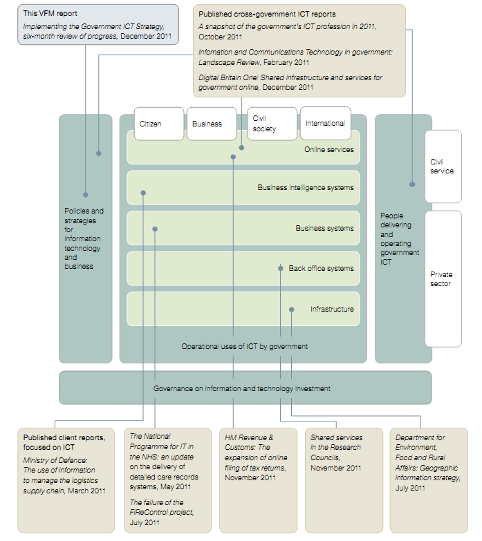 1 Diagram showing the key components taken from Comptroller and Auditor General, Cross‑government, Information and Communications Technology in government: Landscape Review, Session 2010-11, HC 757, February 2011.