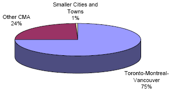 Not surprisingly, infrastructure needs are greatest in the largest urban areas. A full 75% of all infrastructure needs were reported by transit systems in the three largest CMAs (see Figure 11); and the infrastructure needs of the transit systems in the country's 25 CMAs together account for almost 99% of the national total. Nonetheless, the mobility needs of smaller communities cannot be neglected. While the costs are small, the benefits at a local level can be enormous.