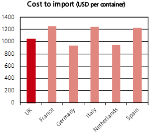 • In spite of the recent increases in the cost to import a shipped container, the UK still offers a competitive environment when compared to other European countries.