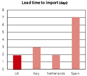 • The UK has some of the lowest lead time to import in Europe, a measure that includes dwell times at ports;