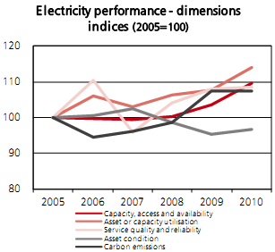 3.62 The performance of the UK's electricity sector has improved since 2005 on the set of measures displayed below, with all indicators of performance (except asset condition) showing a positive trend (see Chart 3.E). The UK has one of the most reliable electricity transmission networks in the world, with 99.9999 per cent system reliability and very low levels of unplanned energy interruptions.7