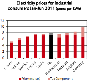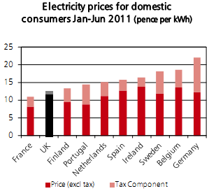 3.64 The cost of electricity has increased over time, reflecting both higher wholesale prices for gas and electricity as well as higher expenditure on transmission and distribution network infrastructure. UK electricity prices including taxes are among the lowest in Europe for domestic customers and are near the median for medium and large industrial consumers. Differences in costs across Europe are caused by a range of factors including variations in generation mix and tax treatment. Electricity costs for very large industrial users relative to the rest of EU are less certain and are particularly influenced by exemptions from policy costs in different countries.