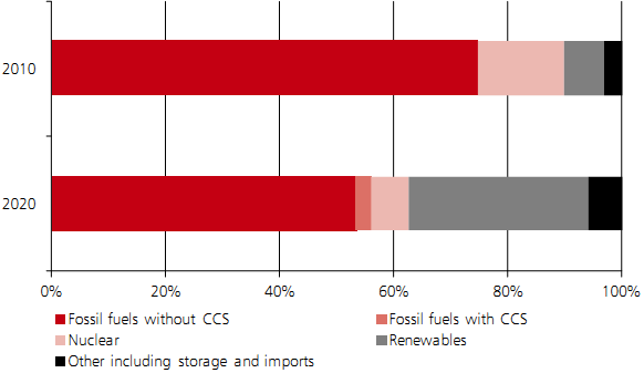 8 Installed capacity at the end of 2010 has increased to 90.2 GW from 84.7GW at the end of 2009, which is why this figure differs from the 'quarter' quoted in the July Electricity Market Reform White Paper. Around 19.1GW (21 per cent of installed capacity) is expected to close by 2020 as a result of EU regulations and nuclear plant coming to the end of its regulated life.