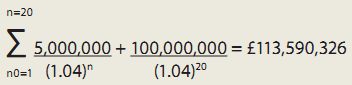 | Example of a bond prepayment cost: "Spens" = a payment to the bondholder that is the higher of the par value of the bond and the present value of the payments on the bond discounted at the then current yield on the UK government bond (gilt) of the same duration Assume: Therefore, annual cash flows = 30 interest pay-ments of £5,000,000 and a final principal payment of £100,000,000 If there is a prepayment at the end of year 10: The amount owed to bondholder without a Spens clause = £100,000,000, representing the outstanding par value of the bond irrespective of prevailing rates at the time of prepayment. But, the amount owed to bondholder with a Spens re-quirement if gilt rate is 4%