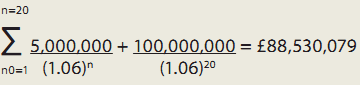 | Example: the "Par floor" effect Assume the same bond as in the previous example, but interest rates have risen since financial close. Amount owed to bondholder with a Spens requirement if gilt rate is 6% =