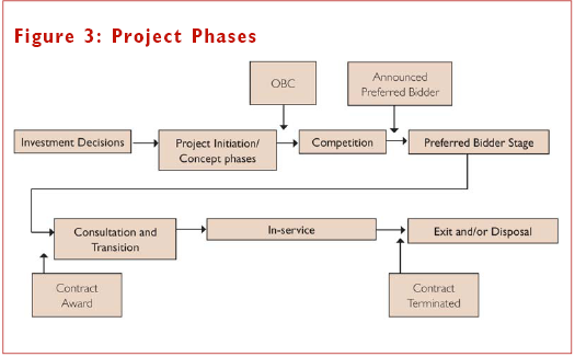 • The preferred bidder phase, when there is greater engagement with the selected private sector contractor and funders (if any) as the deal is negotiated to a deal closure. Experience has shown that expanding the project governance arrangements to include these parties can bring significant benefits;