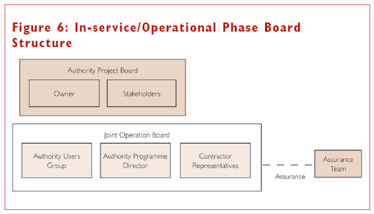 7.17 This should be a three way board, comprising representation from the Authority (those who are responsible for paying for the project), the Authority's end-users/customers of the service, and the Contractor responsible for service delivery. The JOB would deal with practical issues concerning the running of the contract and ensuring that the benefits are being delivered. Specific activities would include the operation of the Pay and Performance Mechanism, the Disputes Resolution Processes, and practical service delivery issues