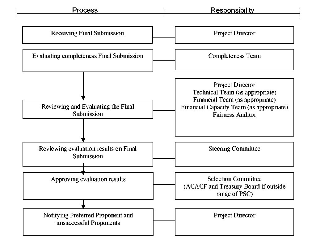 The Financial Team will assess the Preferred Proponent's Financial Offer against the Public Sector Comparator and will summarize their findings in a report to the Project Director.