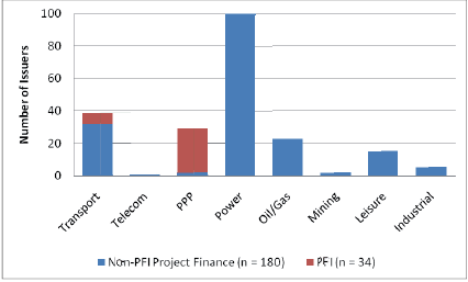 One of the most valuable services that rating agencies provide to the investor community is the publishing of generally high-quality credit research pieces. Recently, each of the 'big three' agencies has published articles on project finance default, recovery or both. However, this is of limited use to the PPP industry. Project finance is employed in a myriad of sectors - often as a risk mitigant in speculative, technology-driven (sometimes emerging-territory) investment ventures such as telecoms, power, oil and gas exploration, and mineral extraction. Where is the common credit ground with social infrastructure PPPs in the UK, Canada or Australia? Furthermore, as PPPs are but a small subset of the rated project finance universe (UK PFI projects represent 16 percent of S&P's project finance portfolio - see Figure 5) PPP-specific credit traits and trends can easily be masked in any aggregate analysis of project finance loan performance.