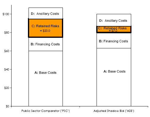 | In order to accurately estimate and compare the total cost to the public sector of delivering a project through traditional procurement versus AFP, it is necessary to identity and calculate the monetary value of the risks that the public sector will retain under either delivery model. |