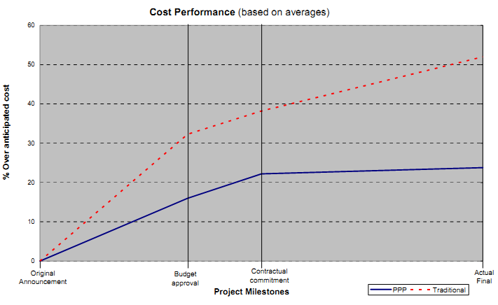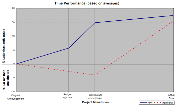 The relative time and cost performance for PPP projects and Traditionally procured projects are indicatively represented in the summary diagrams Figures S1 and S2.