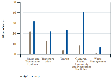 23 Statistics Canada, "From Roads to Risks: Government Spending on Infrastructure in Canada, 1961 -2005," Canadian Economic Observer (2007), p. 3.6.